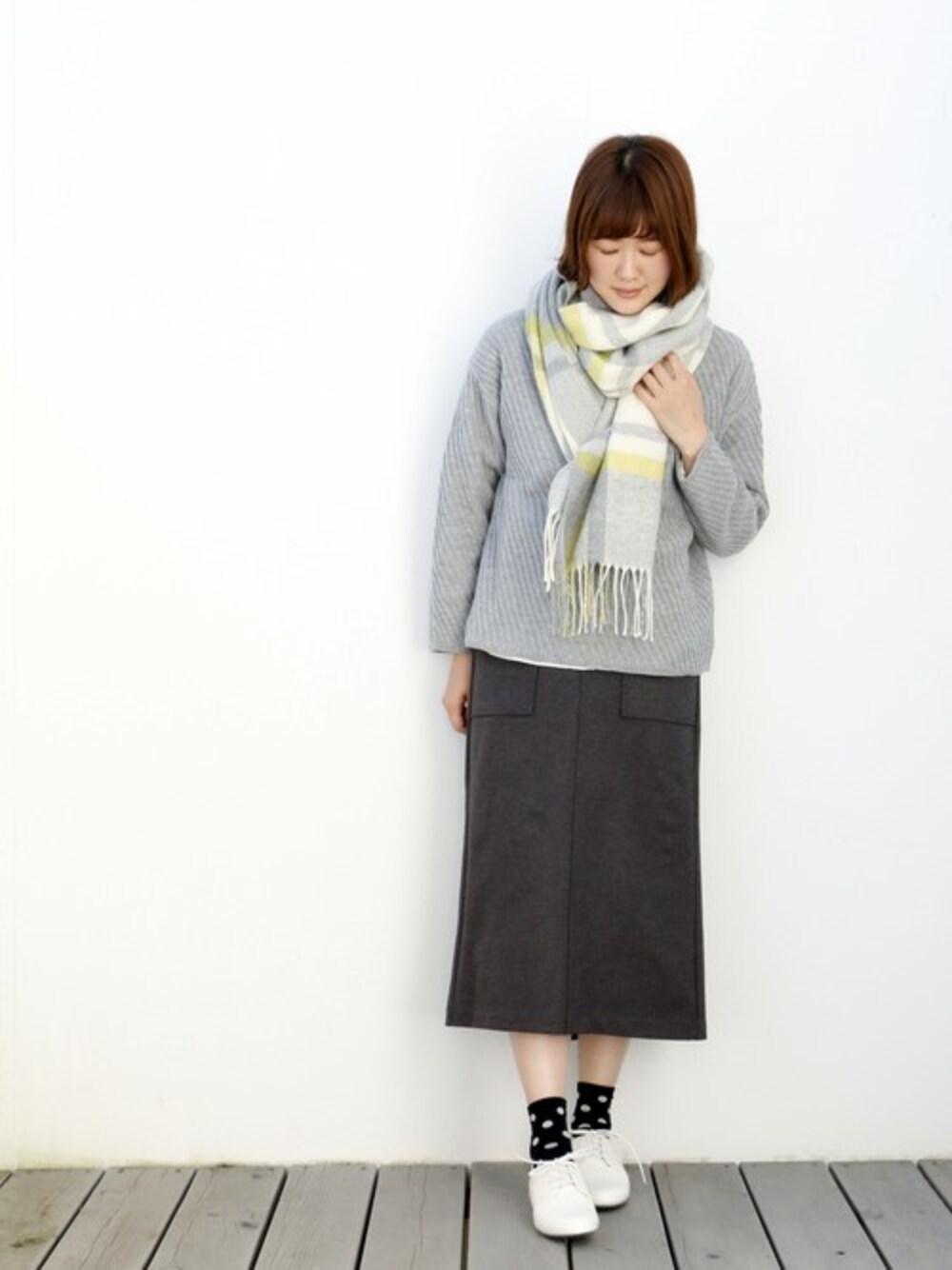 saku(Lbc with Life ぴぽっと仙川店)のストール/ショール「ソフトカラーチェックストール」を使ったコーディネート