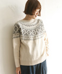 カーディガンとプルオーバー、2つの着こなしを楽しめる前後2WAYのアイテムです。 スコットランドの伝統的な柄でもあるフェアアイル柄は、どこかレトロで素朴な雰囲気。 厚手すぎないので、アウターの中にも着やすく、ゆったりしているのでシャツとの重ね着もラクにできます。