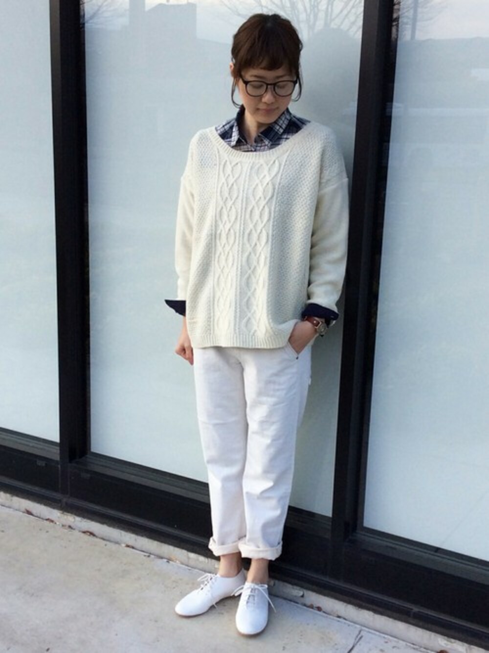 冬だからこそ白!オールホワイトコーデです。 一見難しそうに見えるスタイリングですが、白のトーンを変えたり素材が変わるだけできれいにまとまります。 小物で差し色を取り入れるのもポイントの1つ。今回はインナーのシャツを差しに使用しました。