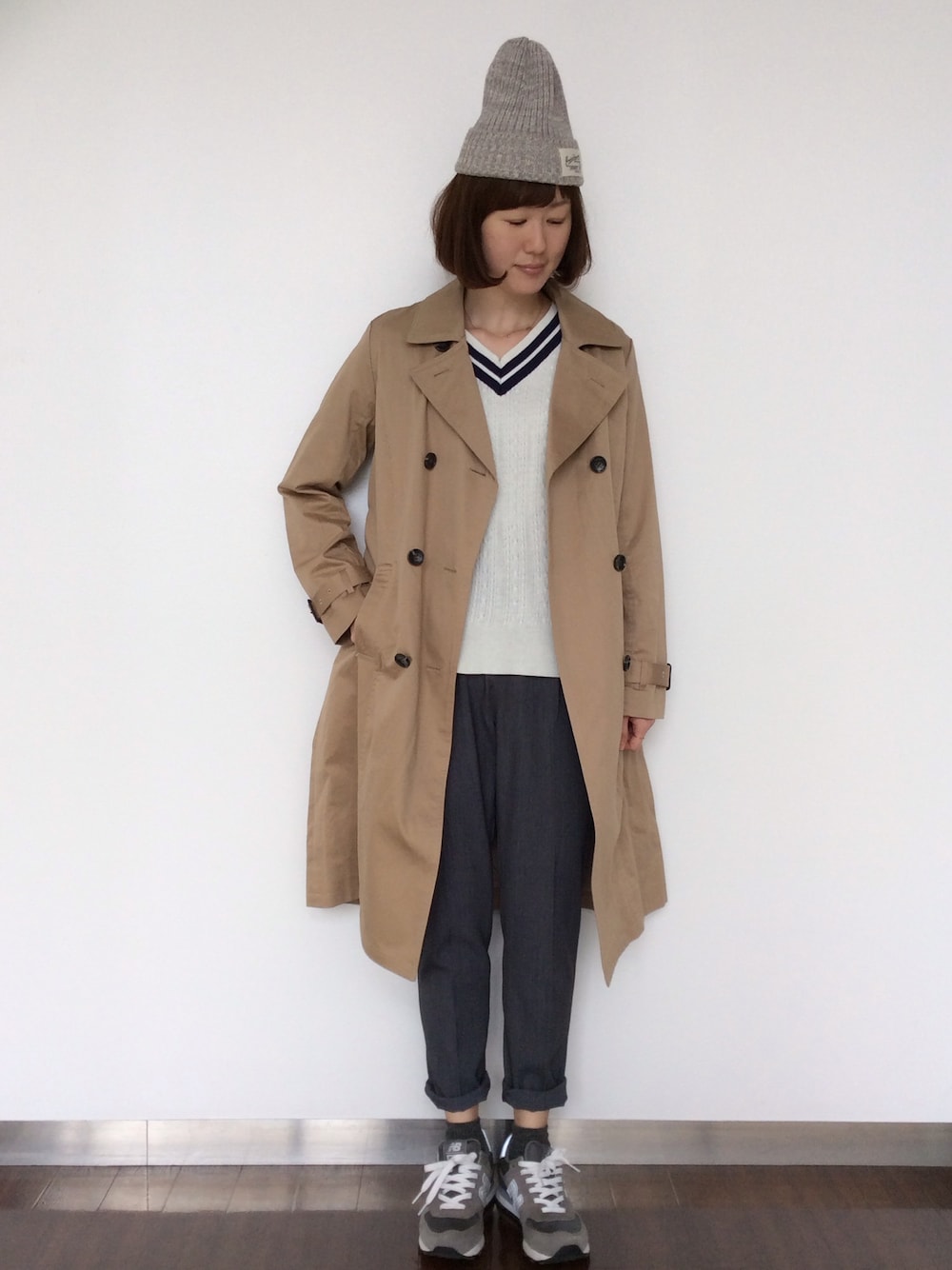 ずっと着たかったチルデンニット、待望の入荷です!トレンドのトレンチとも相性ばっちり! お気に入りのパンツと合わせてみました。 足元はスニーカーで外しました。