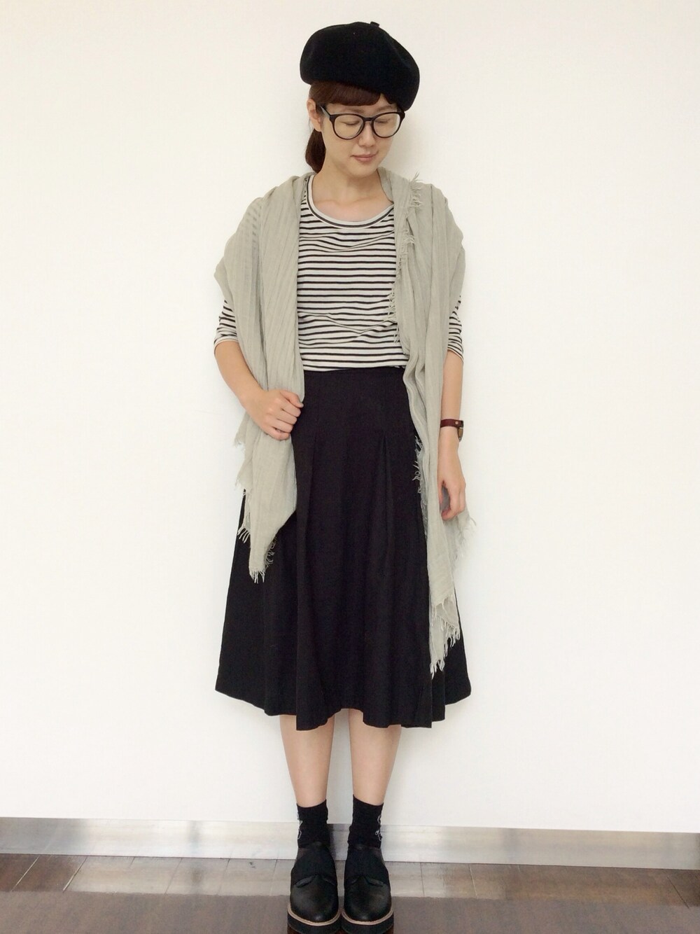 薄手の7部袖は今の季節活躍しますね! ボーダーのピッチも狭いのでカジュアルになりすぎない程よい大人カジュアルを。 全体的にマニッシュにしました!
