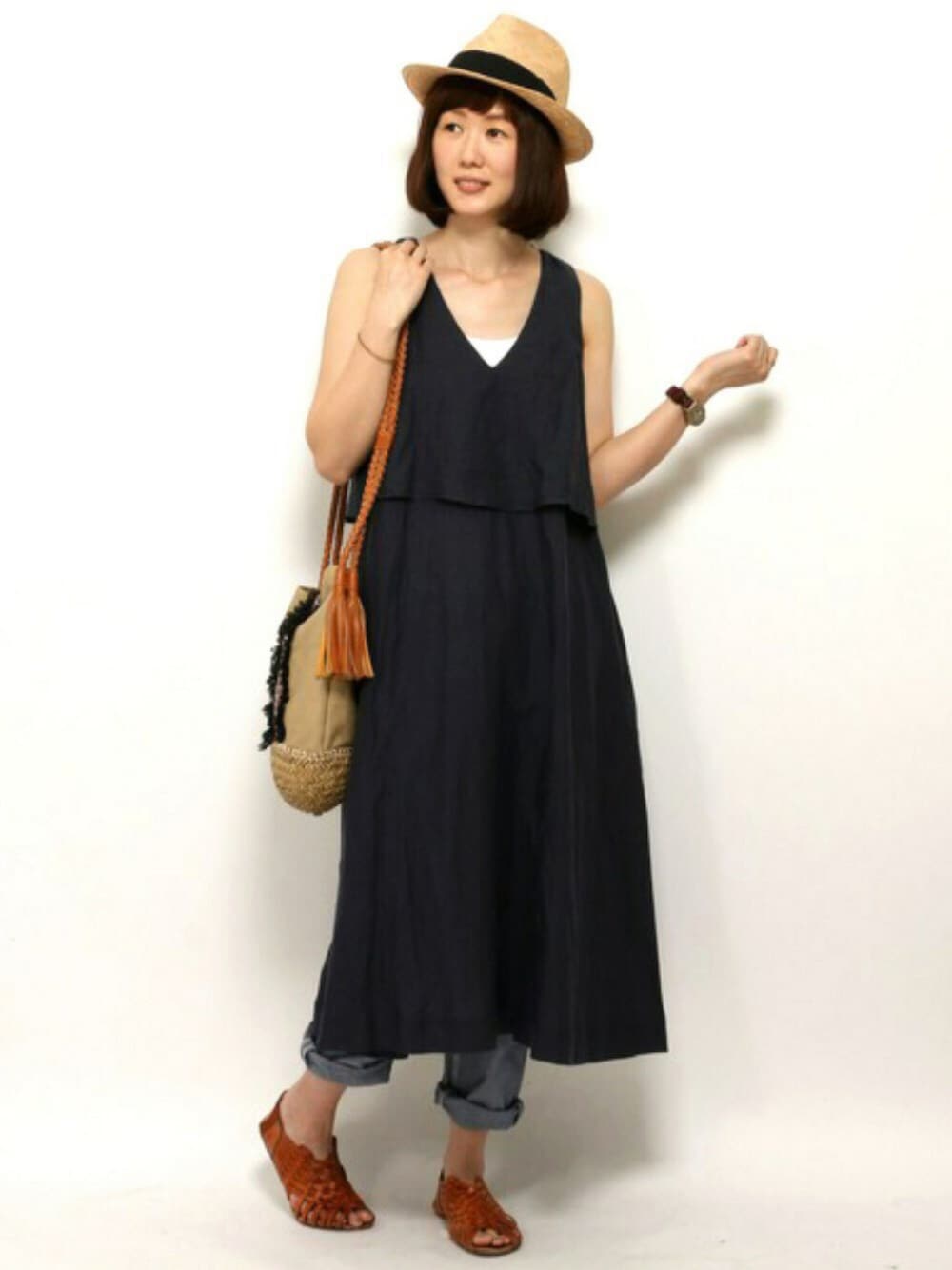 上身頃がレイヤードになったタンクワンピース。 ドレープのきれいなAラインで女性らしくゆったりと着れます。 トレンドに左右されずに、ずっと夏の定番で長く使えるのも嬉しいですね!