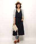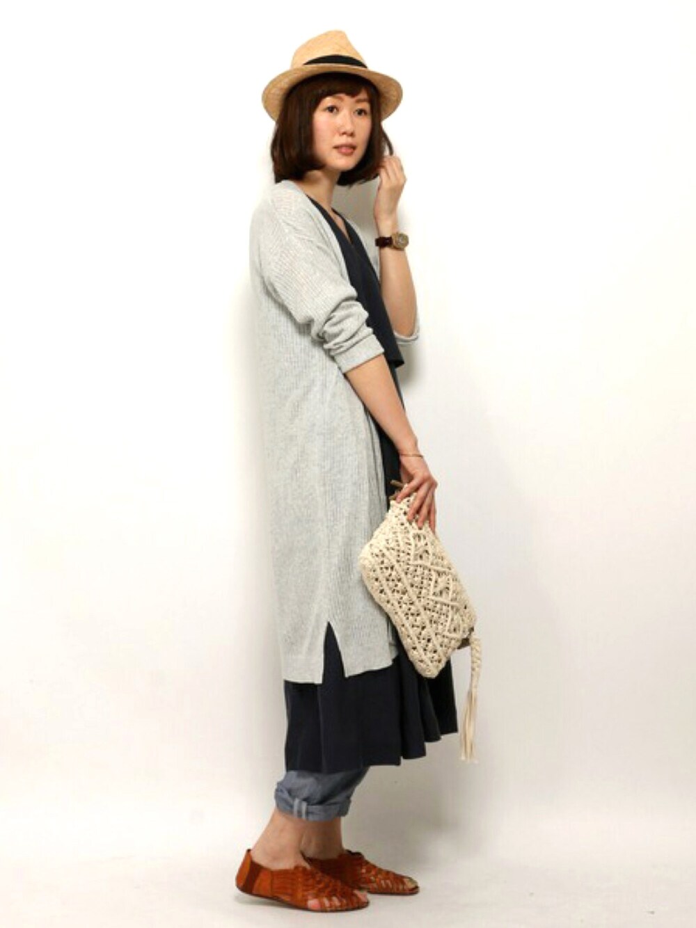 リブのロングカーディガンをワンピース合わせ。 肌触りも気持ちが良く、冷房対策にもオススメです!