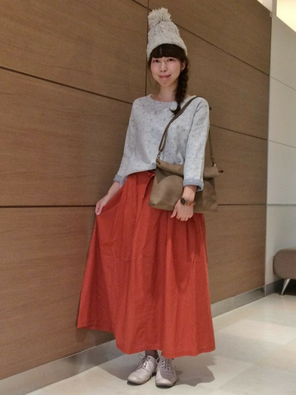 トップスはトレーナーの生地のような素材でムニムニ着やすいです。 実は背中にリボンがあって女子力の高い一品! 今日は可愛い発色のロングスカートと合わせてみました。 Aラインシルエットのトップスなのでパンツと合わせても可愛いです。