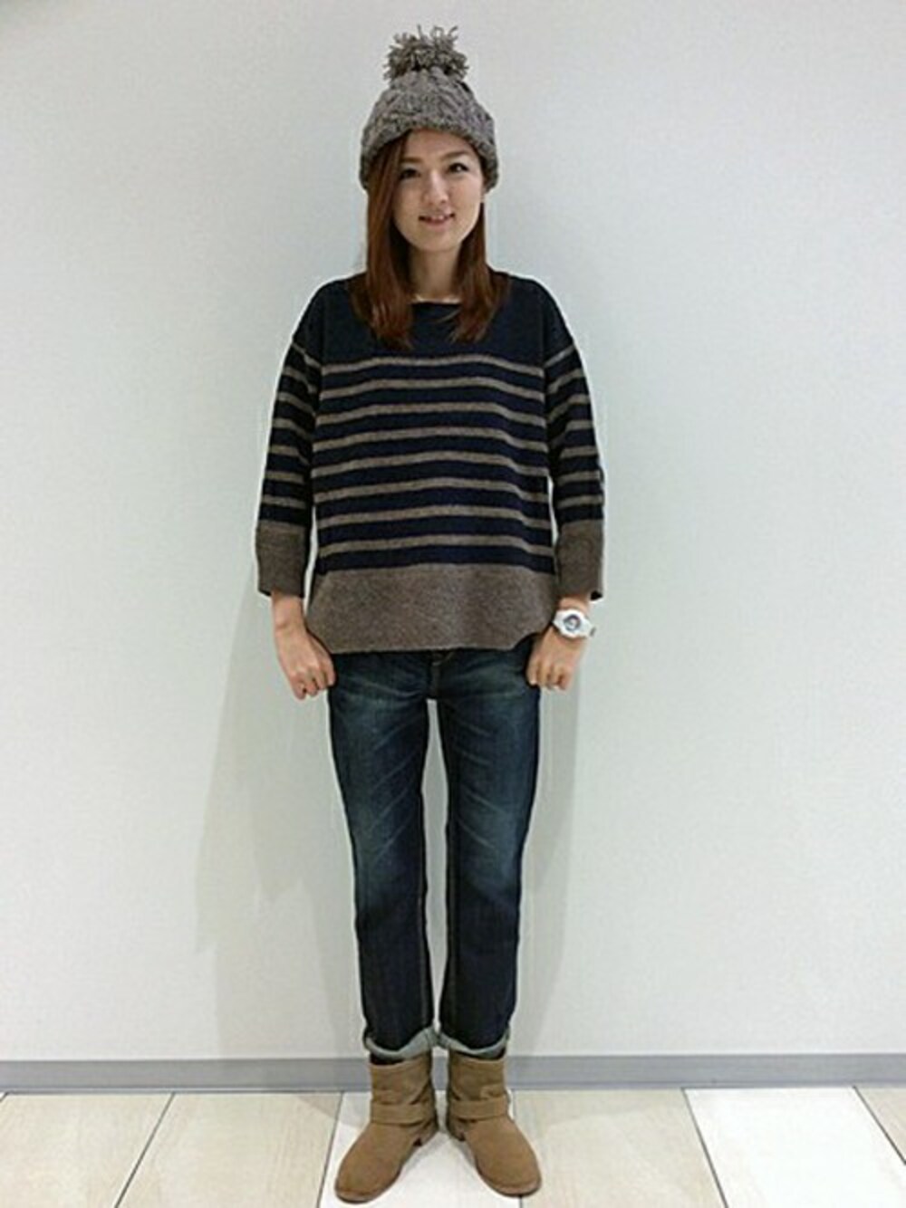 mayu(LBC topicsポンテポルタ千住店)のニット/セーター「Wシェットランド無地&ボーダープルオーバー」を使ったコーディネート