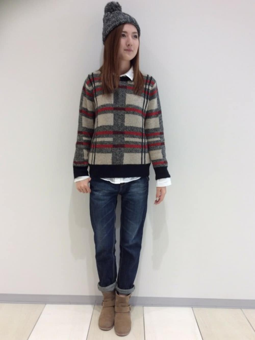 mayuのニット/セーター「7Gチェックジャカードプルオーバーニット 」を使ったコーディネート