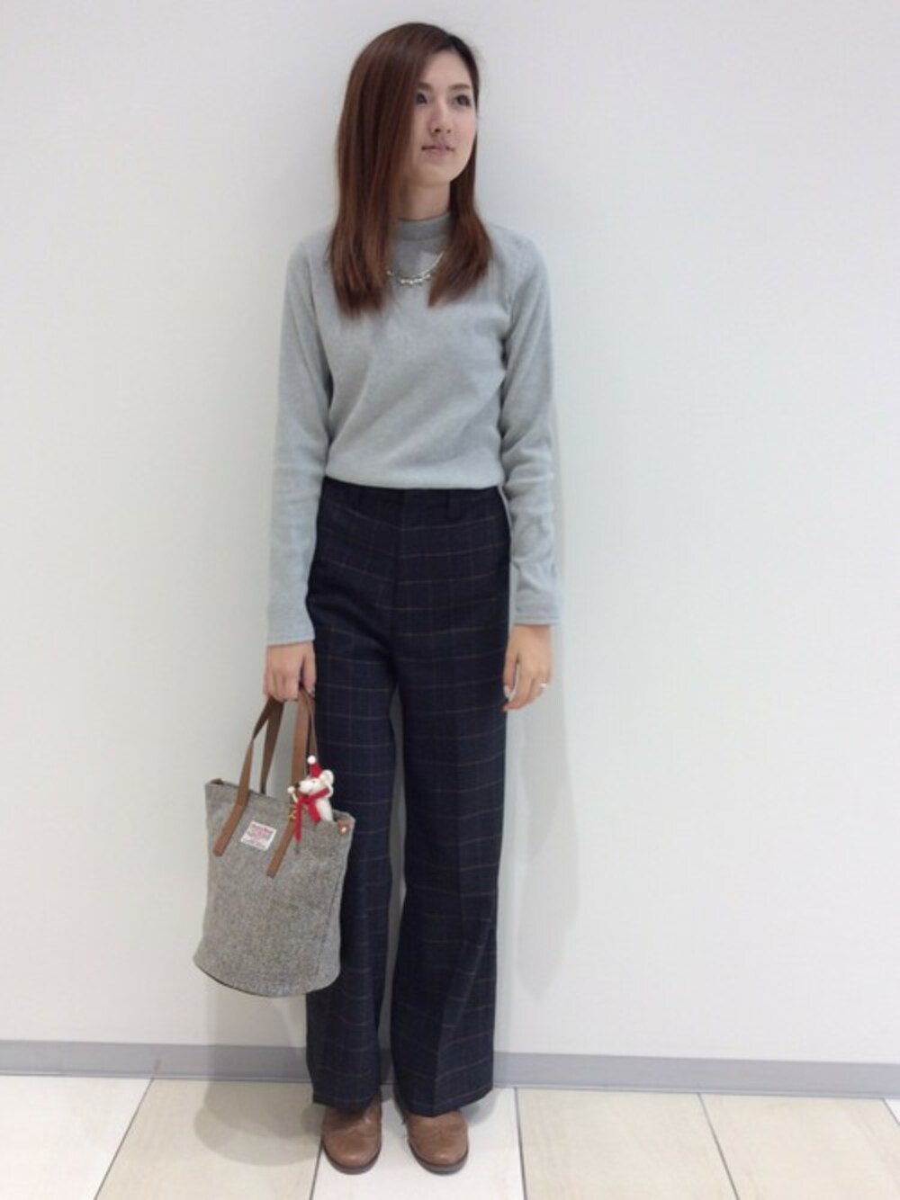 クラシカルなムード漂うチェックのバギーパンツが主役のコーディネート。 トップスはトレンドのタートル。タイトなサイズをチョイスしパンツインスタイルでまとめるのが今年流。 足元はウィングチップシューズをチョイス。 オン・オフどちらにも使えるスタイリングです。