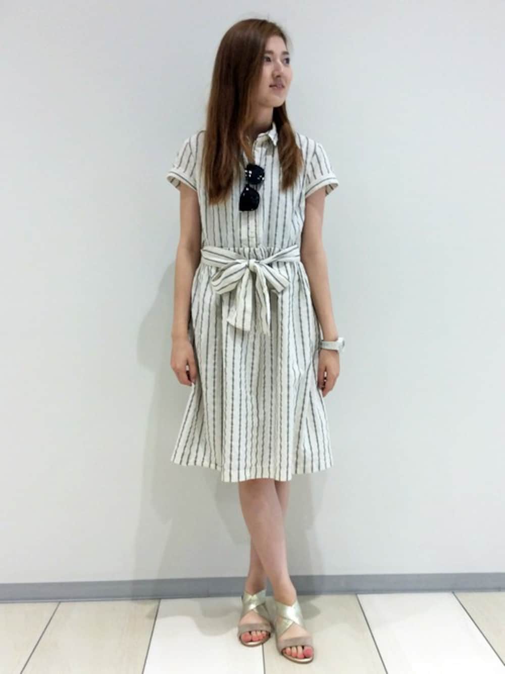 mayu(LBC topicsポンテポルタ千住店)のワンピース「コットンリネンサッカーストライプワンピース」を使ったコーディネート