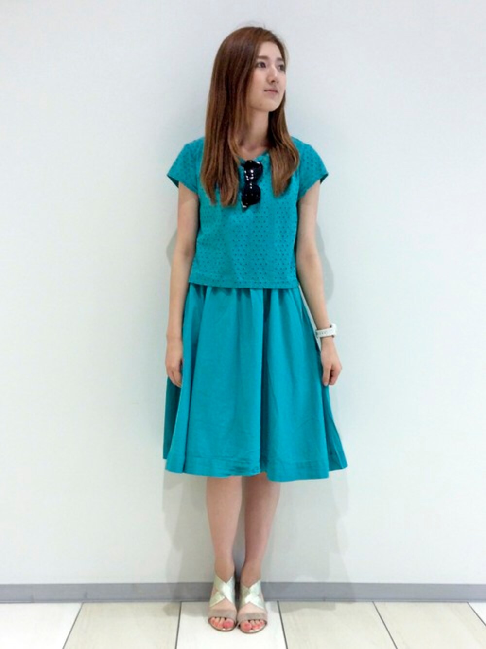 mayu(LBC topicsポンテポルタ千住店)のワンピース「コットンレースドッキングワンピース」を使ったコーディネート