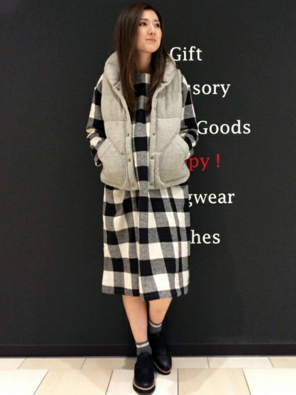 大きめブロックチェックがかわいいラクチンワンピーススタイル。 ゆったりでも広がりすぎない綺麗なシルエットのワンピースは、リネンの入った素材でナチュラルな風合いが特徴です。 ベストはもちろん、人気のロングカーデとも相性ばつぐんです♪ 冬は、カラータイツをプラスするとまたちがった雰囲気を楽しめます。