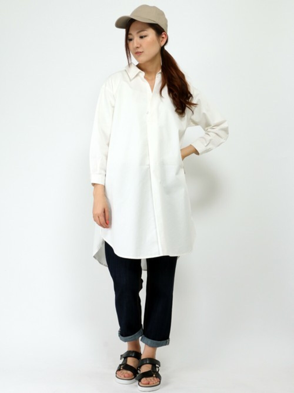 ラクチンながらもキチンと感のあるシンプルなスタイリング。 白の清涼感のあるコットンツイルのワンピースは、スキッパーデザインで首まわりをスッキリみせてくれます。 この春夏注目のキャップや人気のスポーツサンダルをあわせて今年らしくカジュアルダウンしました♪