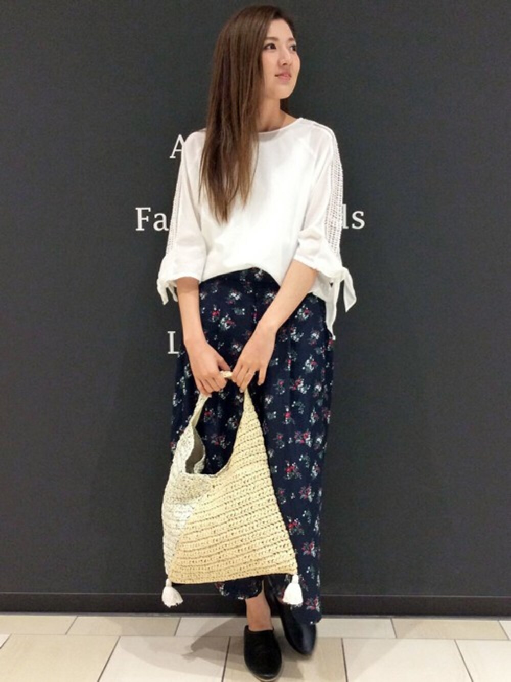 注目の花柄アイテムを取り入れたGWのおでかけコーディネート。 トップスは、さりげなく素肌が覗く肩レースの切り替えで涼しげな印象のブラウス。 レースの効果で5分袖でも涼しく、夏本番にも活躍してくれます♪