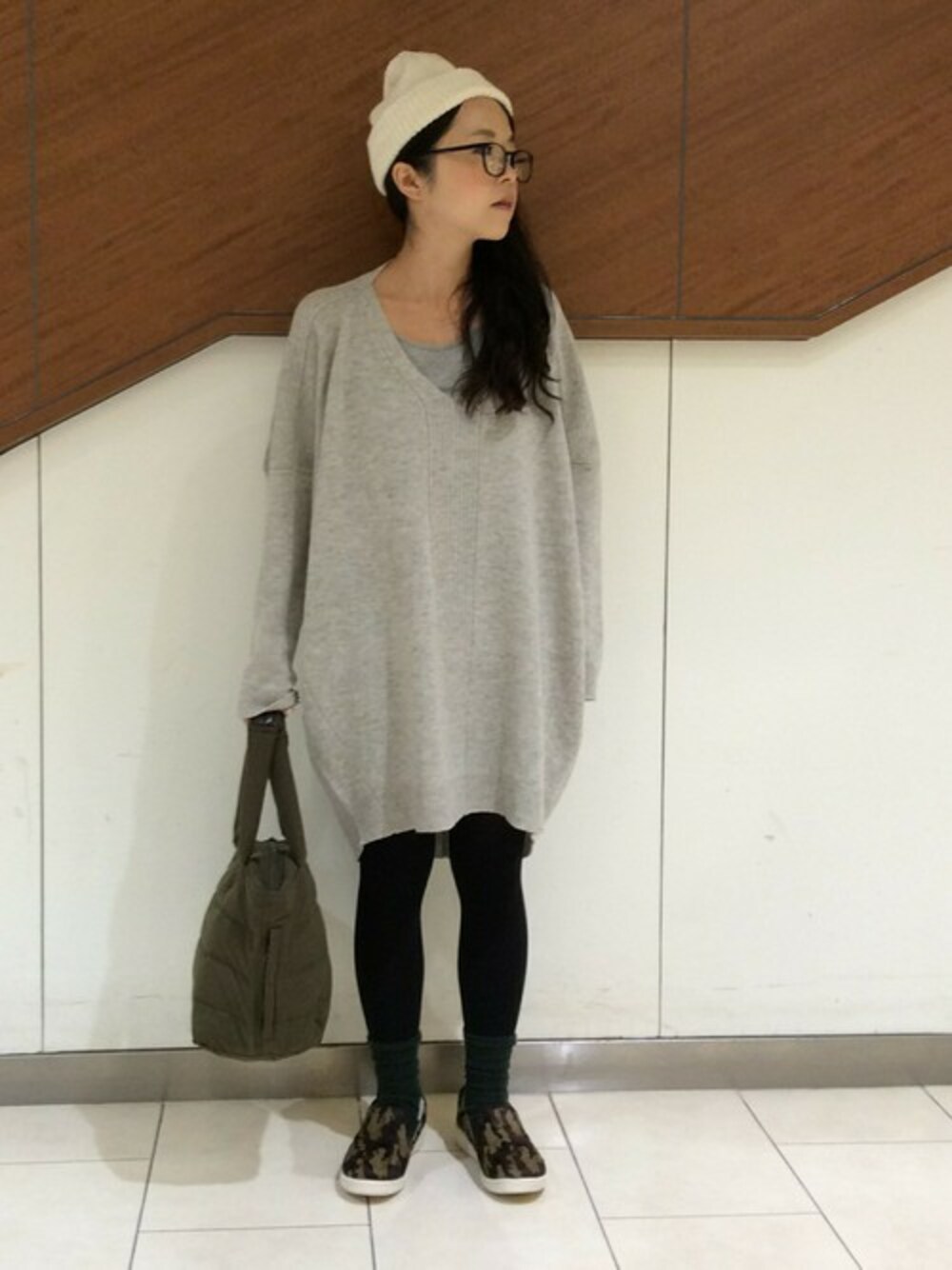 柔らかで肌触りの良いラムウールのチュニックはBIGサイズなので適度なルーズ感が出せます。 ちびっこさんならワンピースとしても◎ スリッポンスニーカーはハラコ素材でリュックな雰囲気があります。