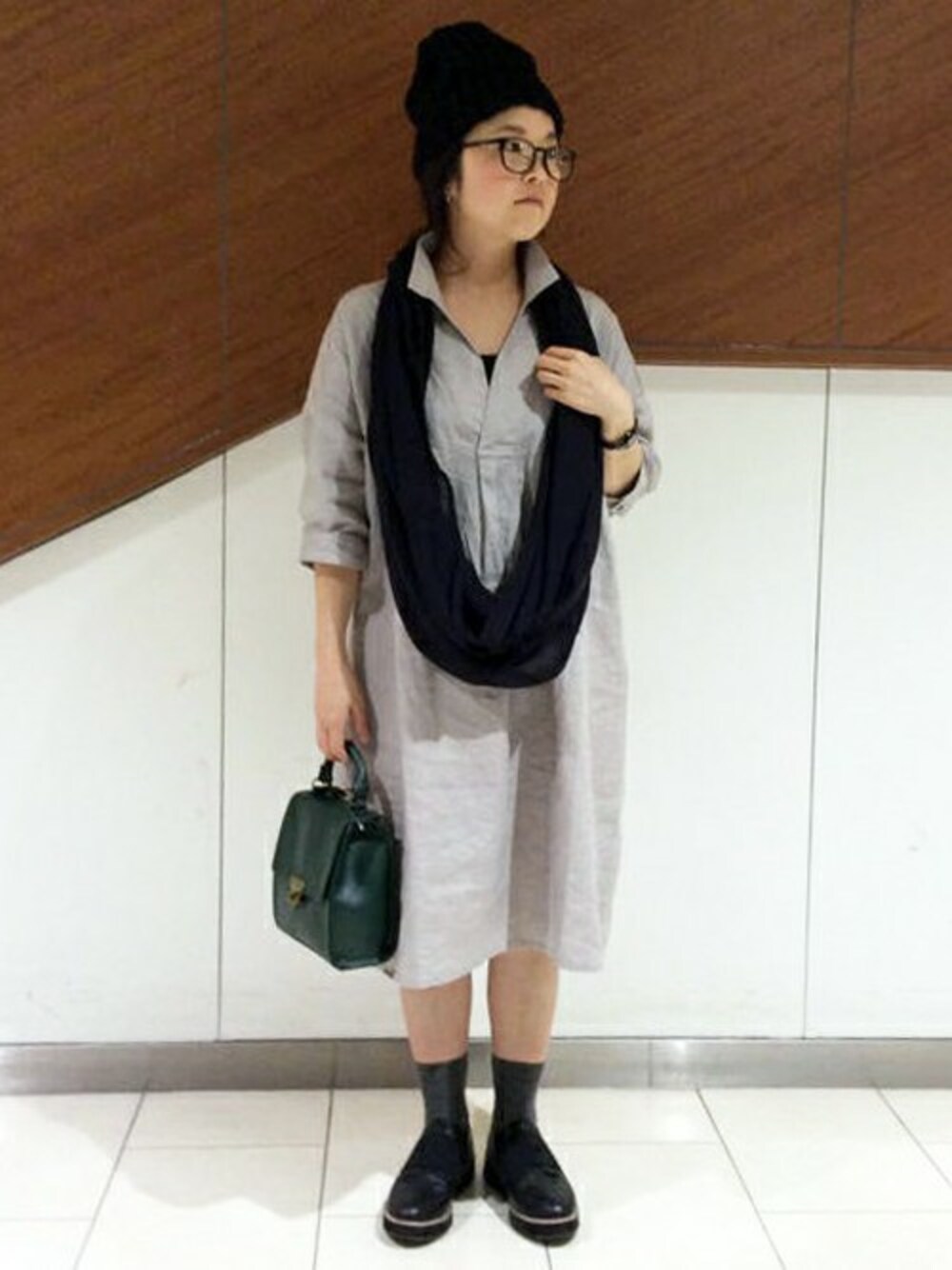 秋の雑貨もりだくさんのワンピースコーディネートです。 おちついたベージュのワンピースは、スキッパーデザインでネックラインすっきり。 リネン素材なので秋の長雨の日でもサラリとした着心地です。 小物はスヌードがおすすめ!この秋冬もスヌード人気は継続しそうな雰囲気です♪