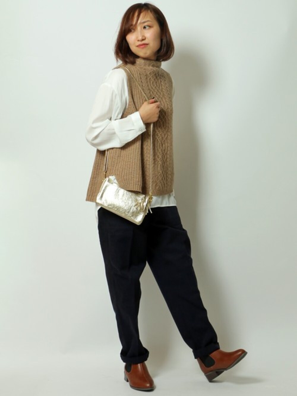 kaoriのベスト「7Gケーブル編みボトルネックベスト 」を使ったコーディネート