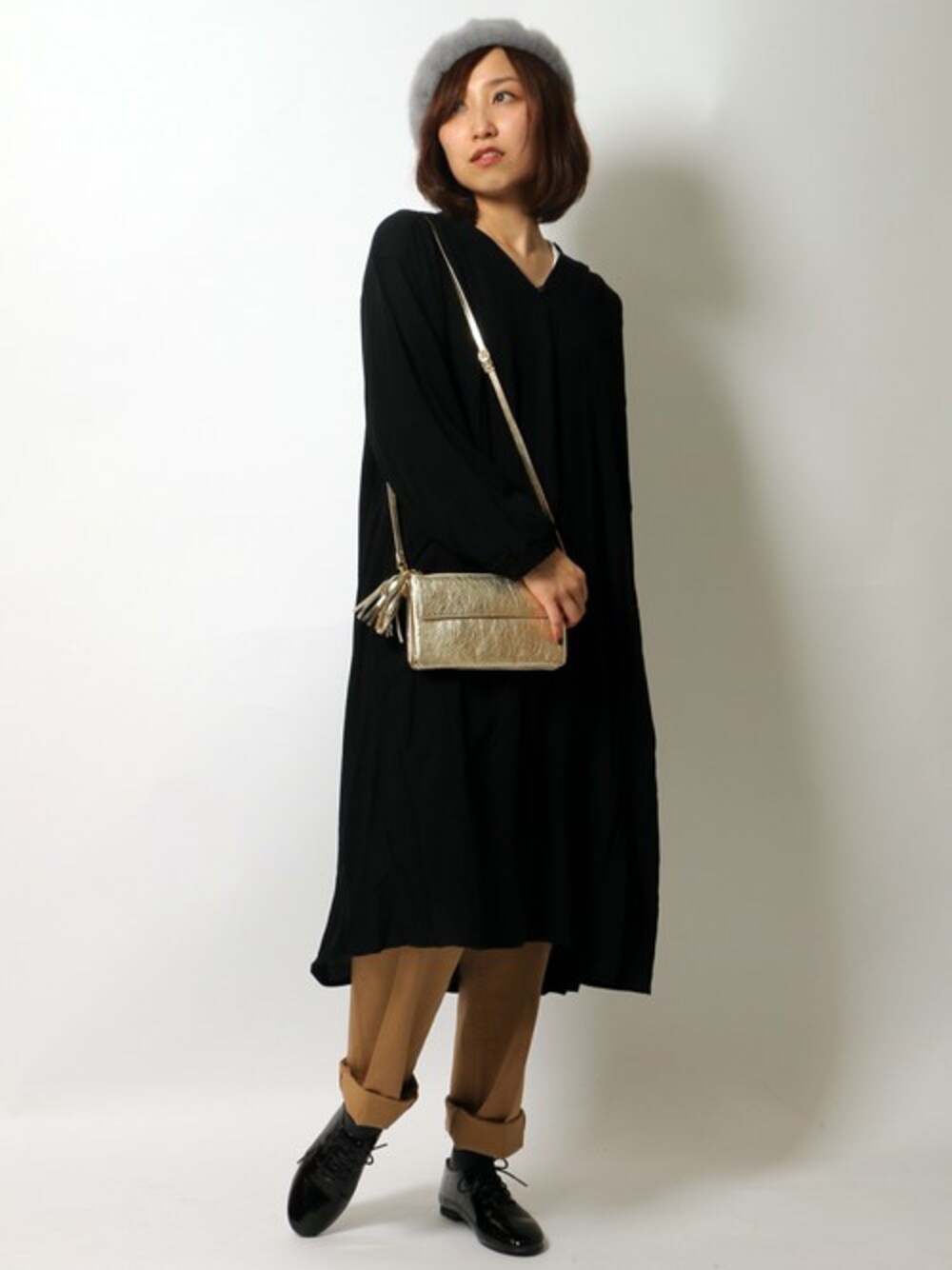 からだをすっぽり包んでくれるラクちんシルエットのVネックワンピース。 幅広い方に着て頂けるシンプルなデザインは、ベルトでウエストマークしたり、アクセサリーをポイントにしたりと小物遊びで自分らしいアレンジを楽しむことができます。 分量感のあるたっぷりなフレアでシンプルでも華やか♪