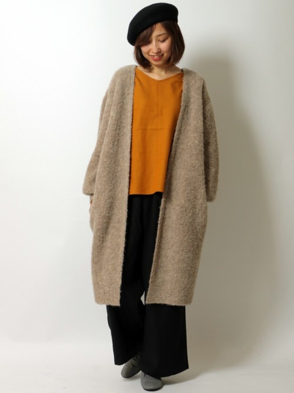 今年人気となっているブークレ-糸を使用したニットコーディガン。 名前の通りりモコモコ感がとってもかわいいアイテムです。 カーディガンよりもしっかりしていて、中間アウターのひとつとしておすすめ♪