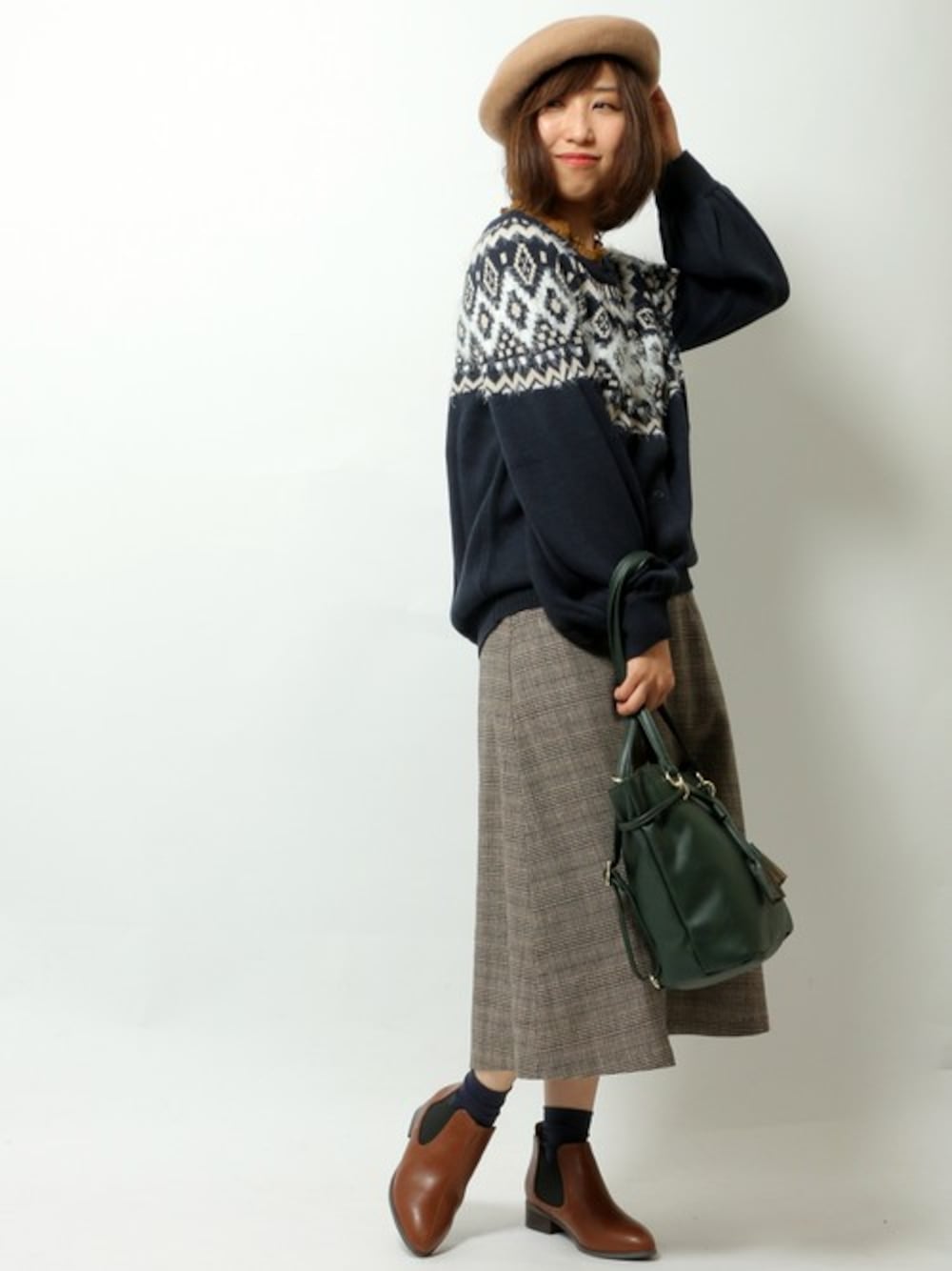 伝統的なノルディックセーターを思わせる求心柄のニットカーディガン。 柄の一部にフェザーヤーンつかったこだわりの一枚。 比較的首のつまったクルーネックスタイルなので、ボタンを閉めればプルオーバー感覚でも楽しめます。 インにスタンドネックのブラウスなどを着用するのも今っぽくておすすめ♪