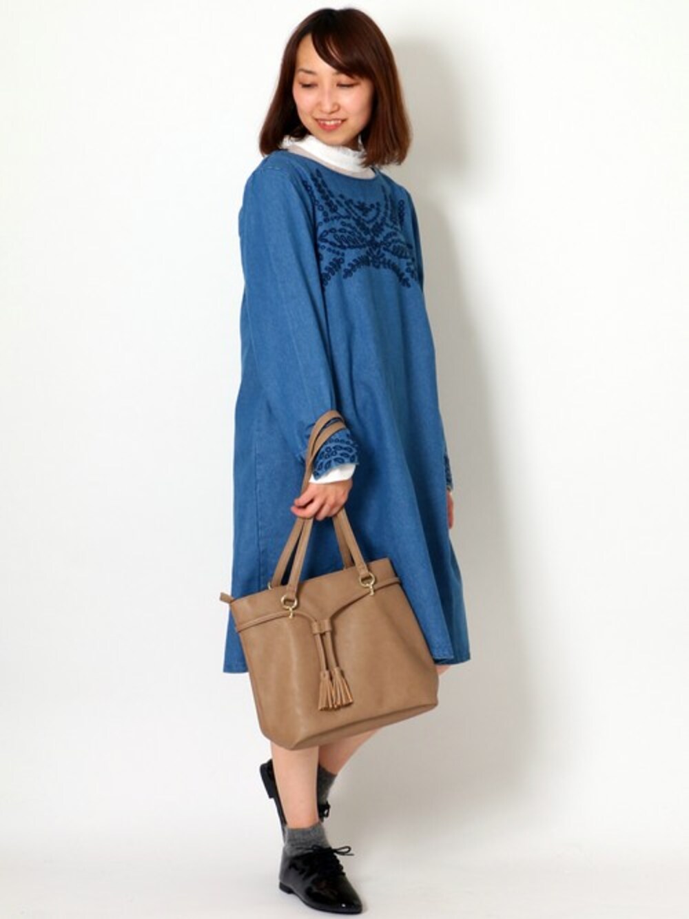 kaoriのワンピース「デニム刺繍チュニックワンピース 」を使ったコーディネート