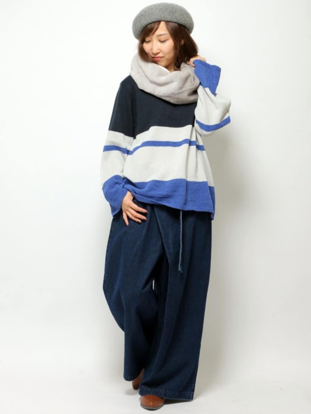 kaoriのニット/セーター「7Gモール糸MIXマルチボーダーニット 」を使ったコーディネート