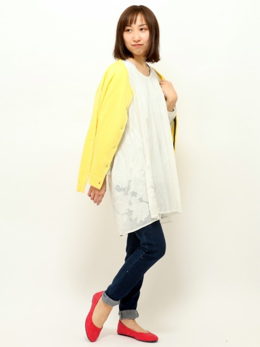 kaori(LBC with Lifeイオン秦野店)のカーディガン/ボレロ「ポイント配色カーディガン」を使ったコーディネート