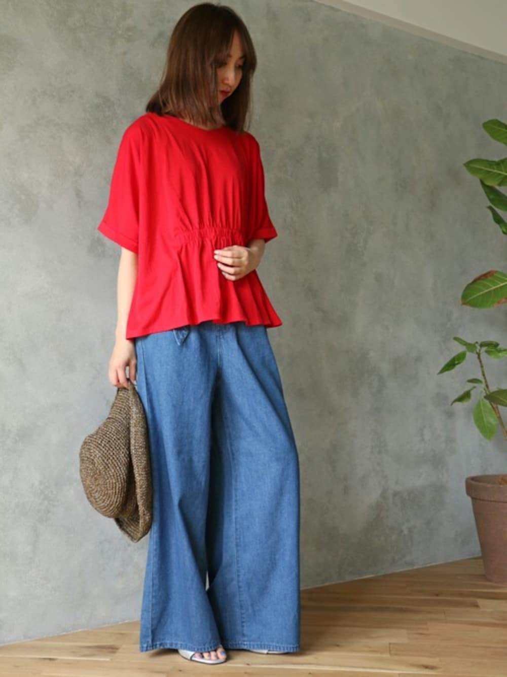 kaoriのTシャツ/カットソー「強撚2WAYギャザーブラウス」を使ったコーディネート