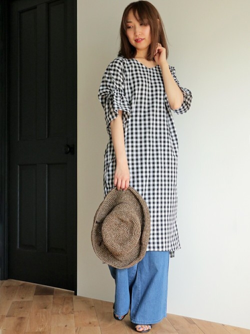 kaoriのワンピース「バックツイストギンガムワンピース」を使ったコーディネート