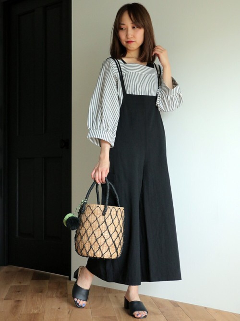 デコルテをすっきり見せてくれるスクエアネックのブラウスです。 ボリューム袖でふんわりしていますが、スクエアネックでスマートな印象。 シャリ感ある爽やかな素材のストライプ柄です。