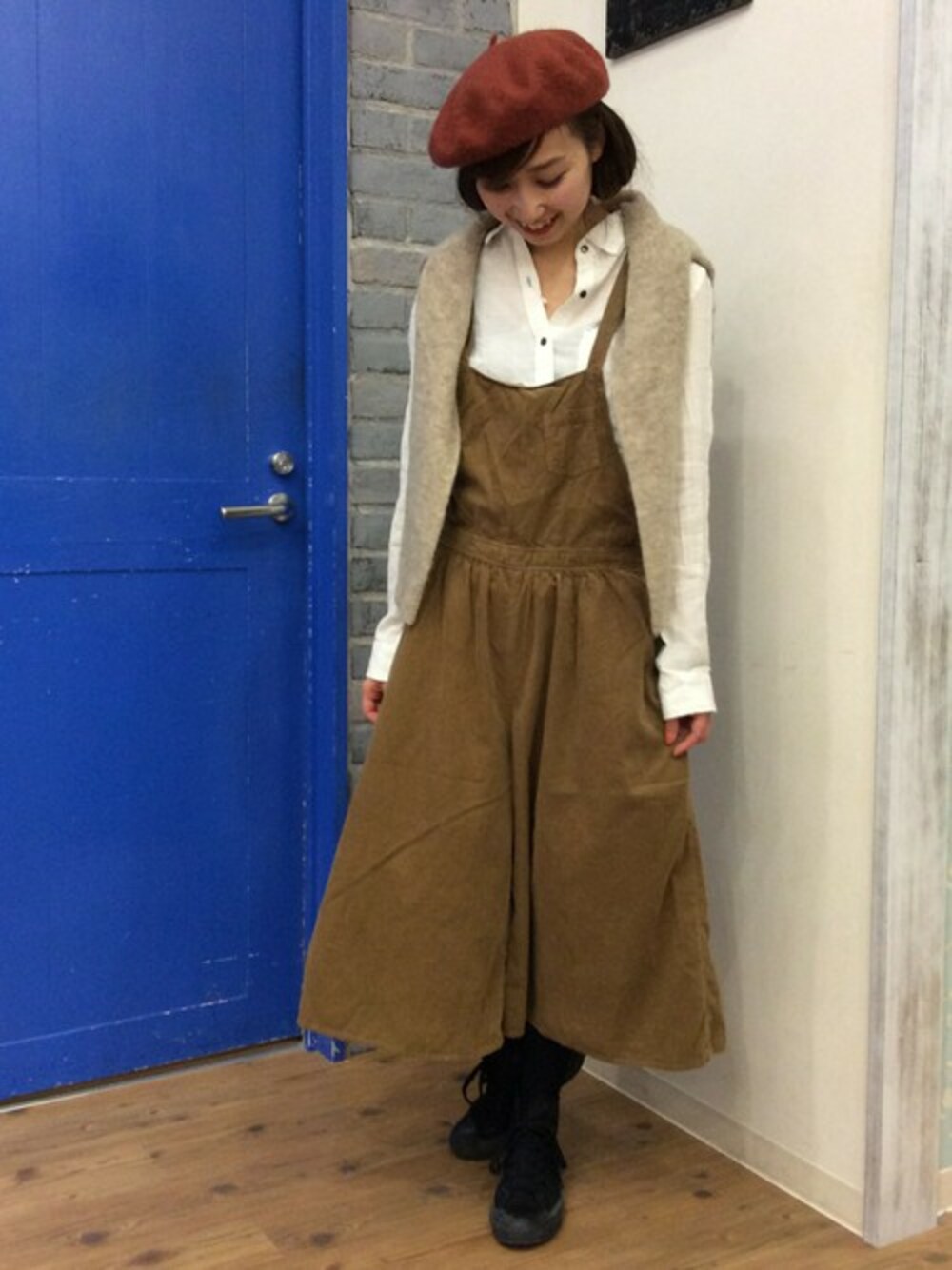 kaoriのワンピース「21Wコーデュロイ胸当て付キュロット 」を使ったコーディネート