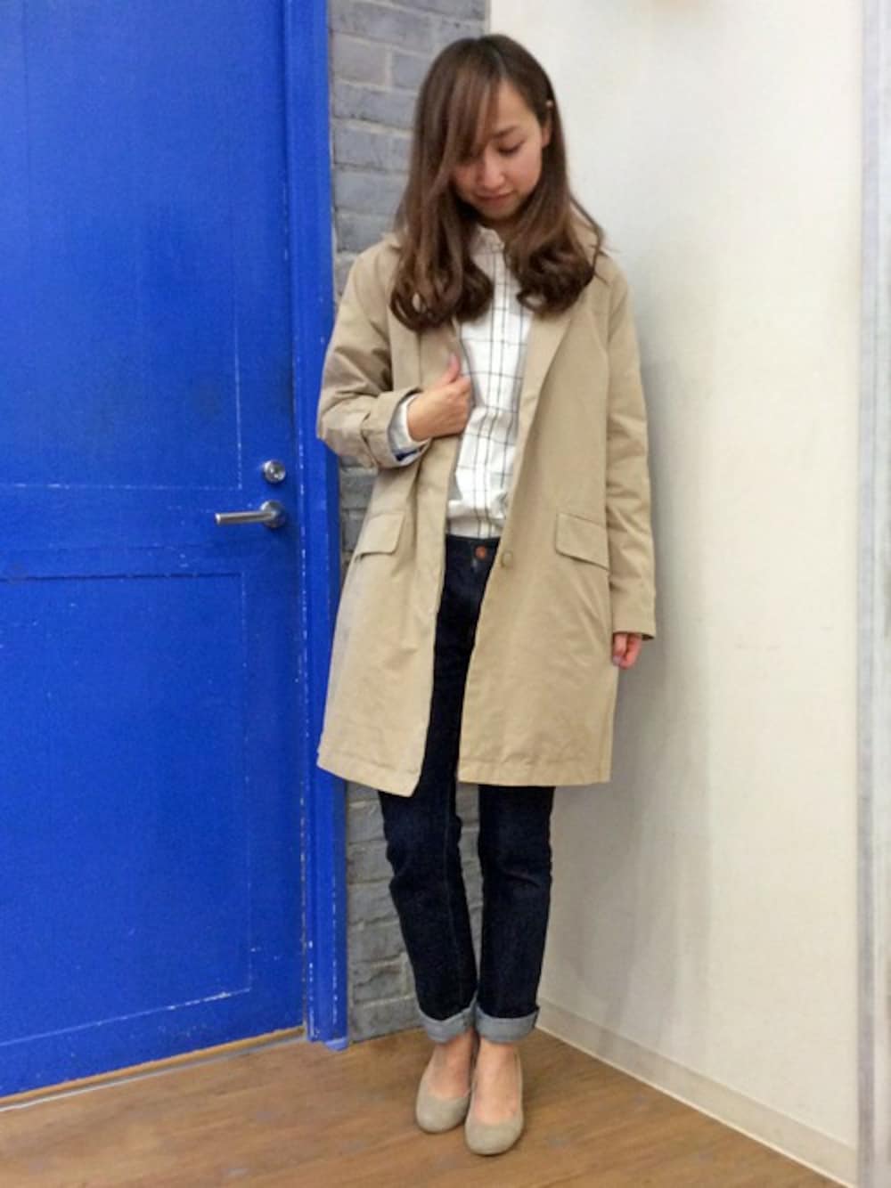 kaoriのステンカラーコート「コットンナイロンダンプフードステンカラーコート」を使ったコーディネート