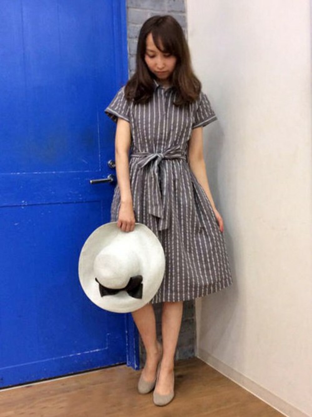 ちょっとしたおでかけにピッタリのワンピースコーディネート。 涼しげなストライプのワンピースは、リネンがはいって暑い季節もさらりとした着心地です。 ツバ広ハットとパンプスをあわせると大人の女性らしい雰囲気UPします♪