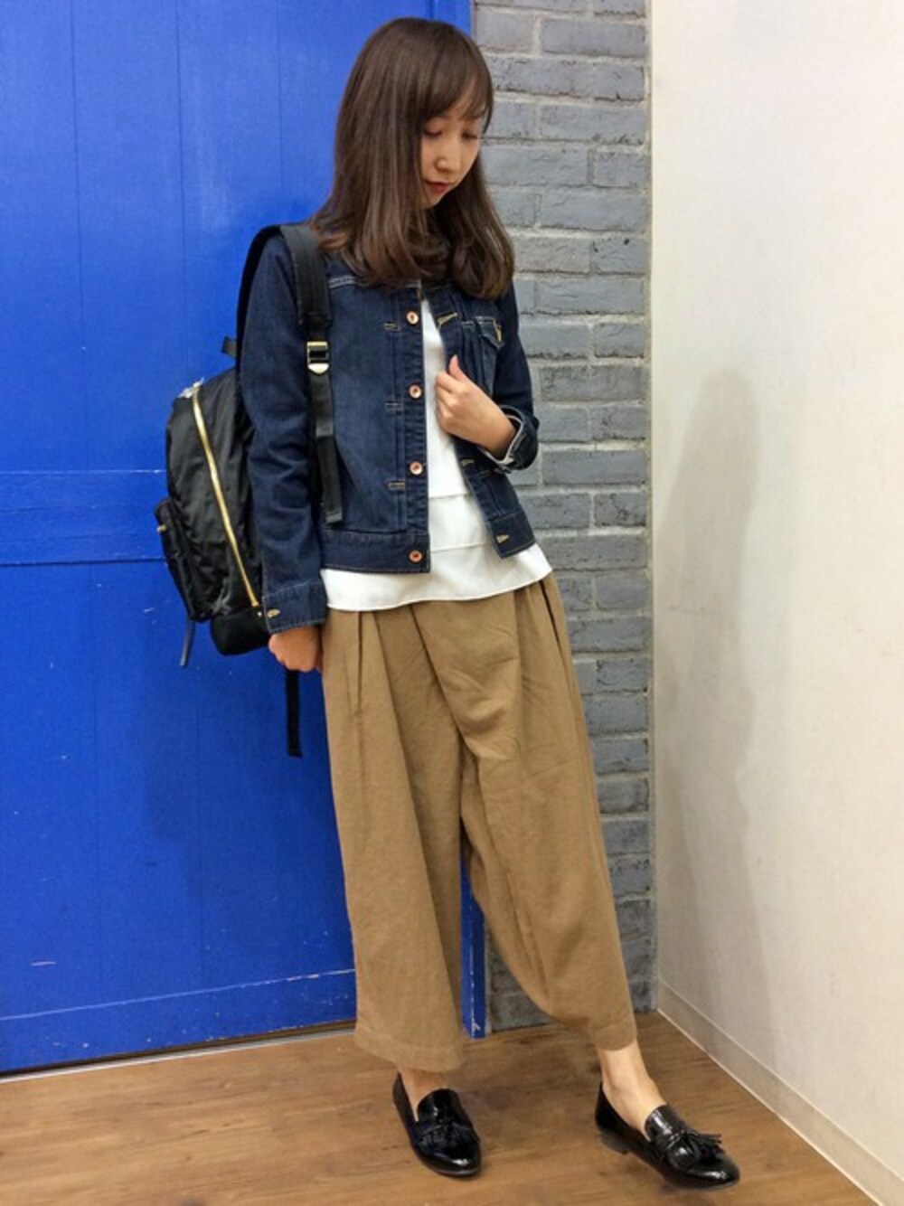 春の休日におすすめのラフスタイル。 トップスは、リラックス感のある素材にふんわりシフォン。裾がティアードデザインになっていて、一枚で着ても様になるアイテム。 シンプルにクロプトパンツ+アクセで通勤にも着回せます。 今回は、Gジャンに旬のガウチョパンツを合わせてカジュアルにまとめました♪