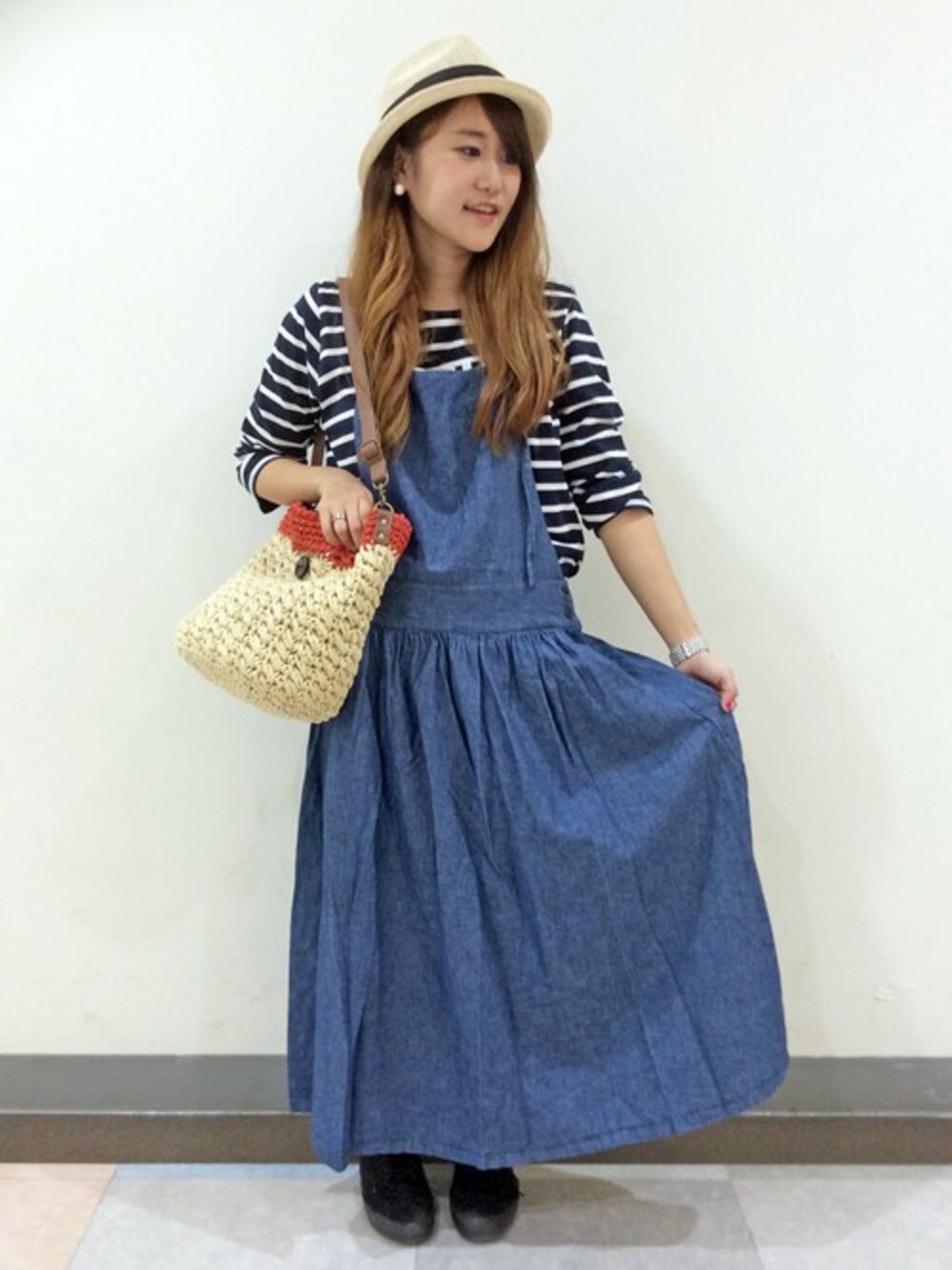 HARUのワンピース「コットンリネンデニムエプロンワンピ」を使ったコーディネート