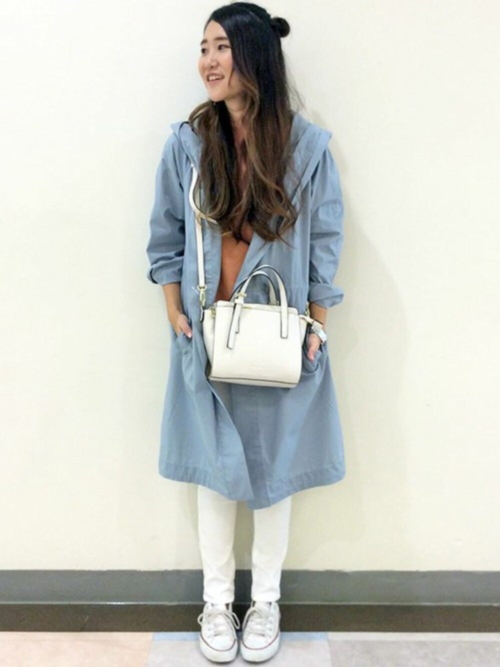 キレイカラーの春モッズコートにシロをあわせた休日コーデ♪ 着流し仕様にデザインされたモッズコートは、サラッと羽織れるこれからの季節にうれしいアイテム。 インナーにピンクをあわせると春らしさがUPします。