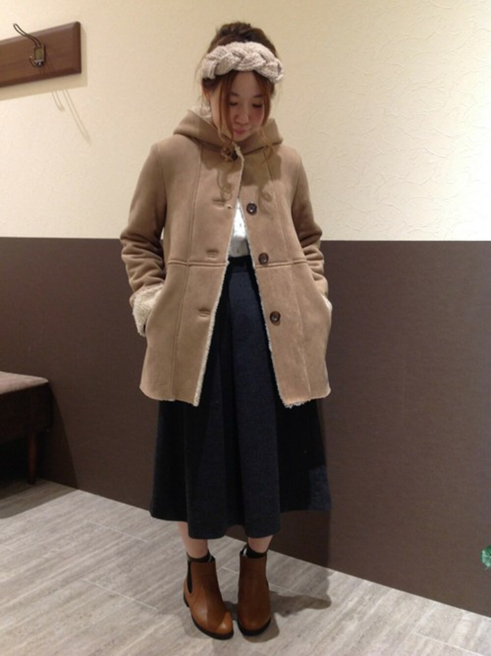 kodamaのムートンコート「Eムートンフードコート」を使ったコーディネート