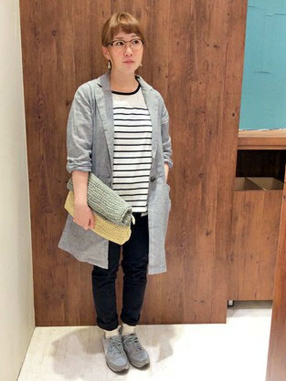 コットンとリネン素材のかるいアウターです。 今の時期のはおりにぴったり♪ スキニーと合わせてIライン強調するとスッキリかわいいコーデでオススメです。
