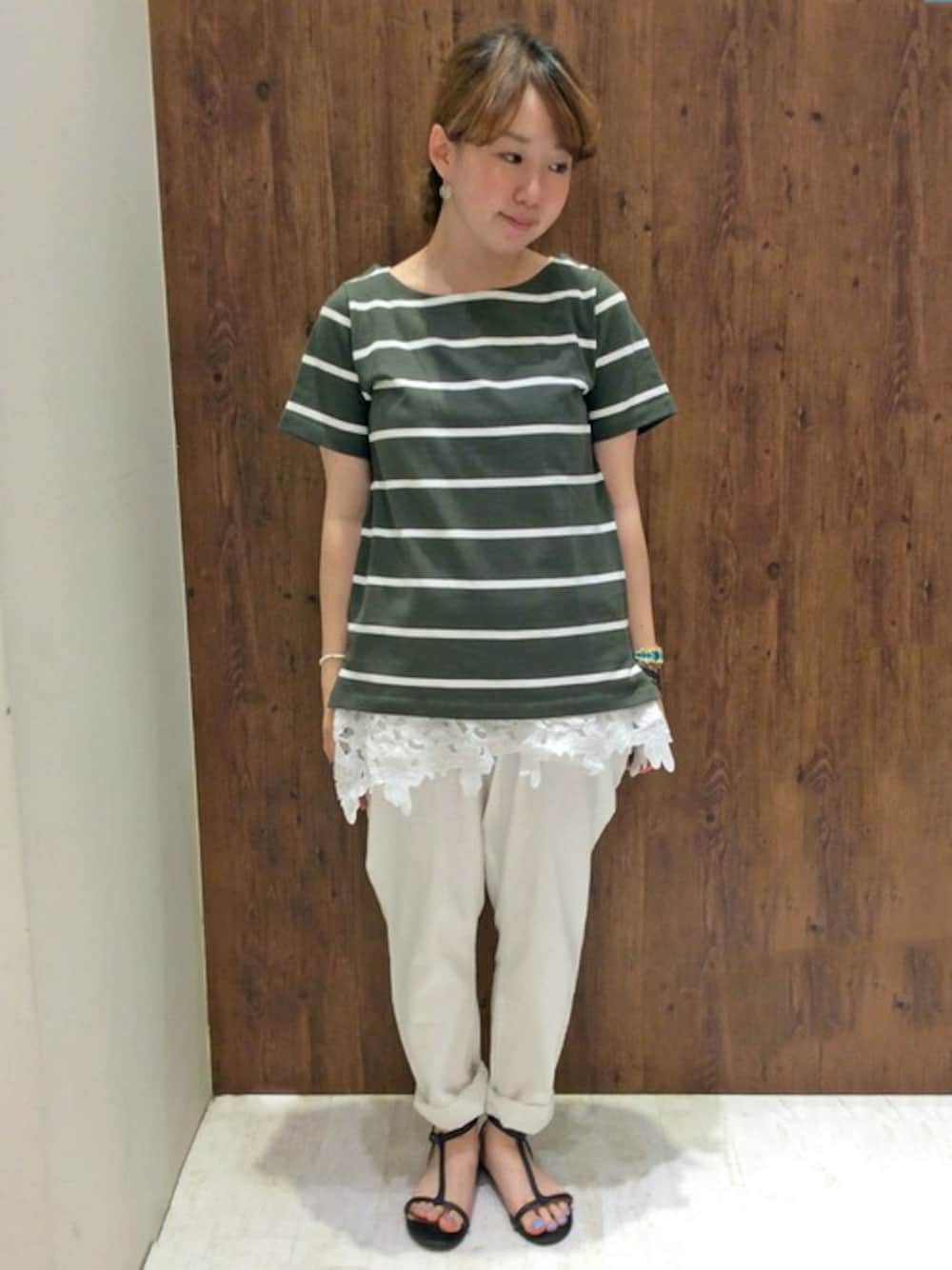 kodama(LBC marketイオン与野)のTシャツ/カットソー「コットンボーダーレースアップ使いプルオーバー」を使ったコーディネート