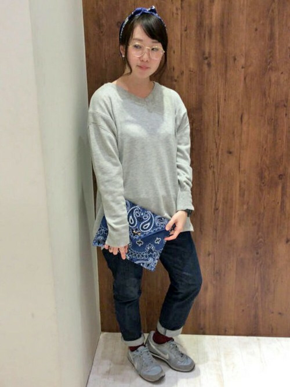 小物使いがポイントのデニムコーディネート。 この春夏注目のバンダナ柄は、ストールやクラッチバッグなど小物でとりいれるのがおすすめです。 ストールは、シルク100%なのでヘアバンド風にしたり、首元に巻いたりとアレンジが楽しめます♪