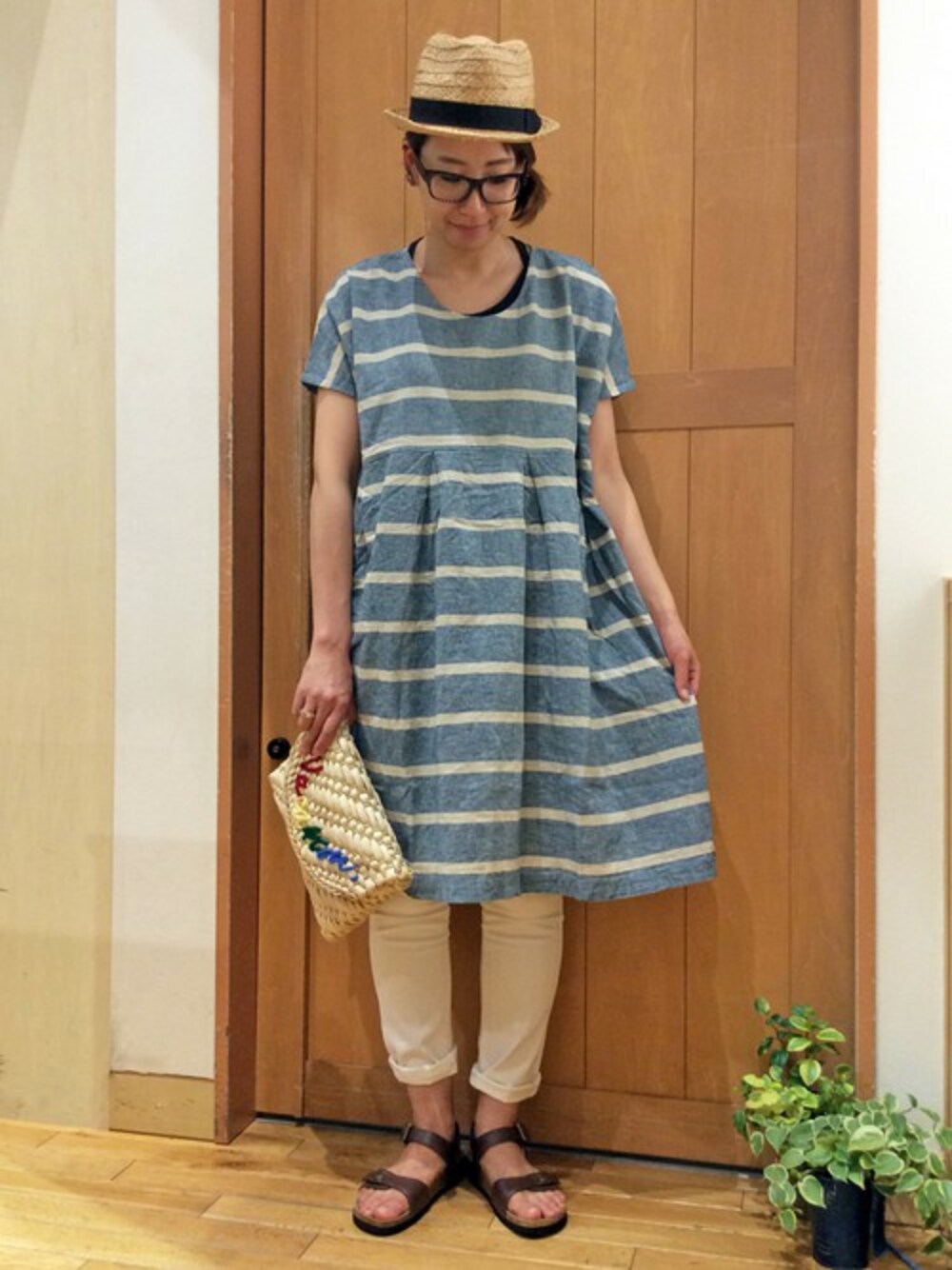 YOKOのワンピース「コットンリネンボーダーVネックワンピース 」を使ったコーディネート