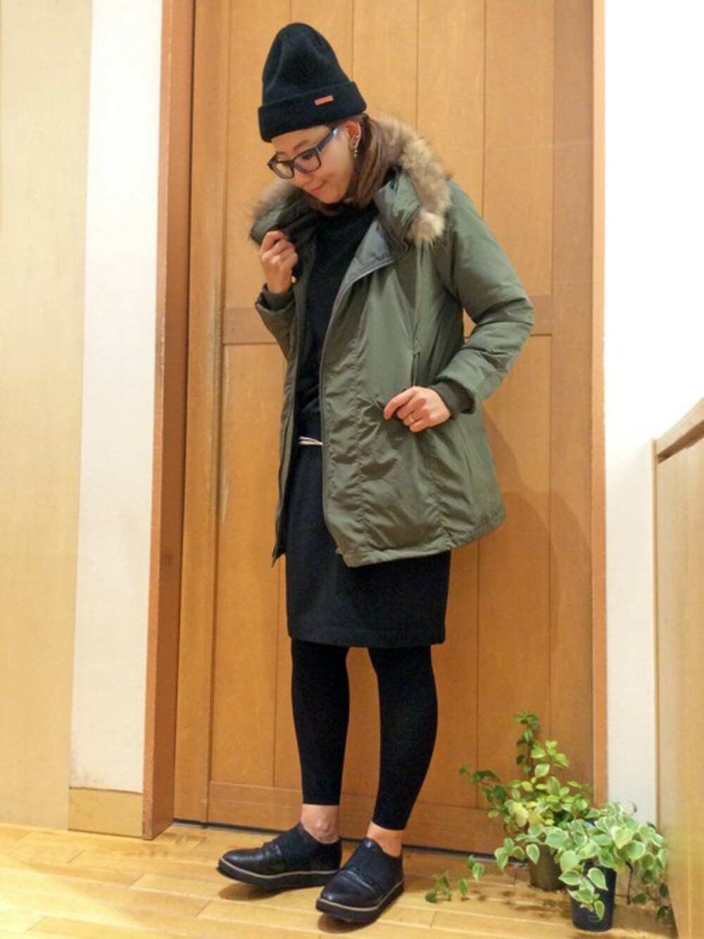 カーキ×ブラックの大人かっこいいコーデです。 モッズコートならではの合わせやすさと、ダウンの暖かさを兼ね備えたコート。 ヒップが丁度隠れる長すぎない着丈で、防寒性はもちろんコーディネートのバランスも◎ インは、シンプルながらもハイネックトップス&コクーンシルエットのスカートとトレンドを抑えたアイテムでまとめました。 ニット帽&マニッシュシューズで小物もぬかりなく♪