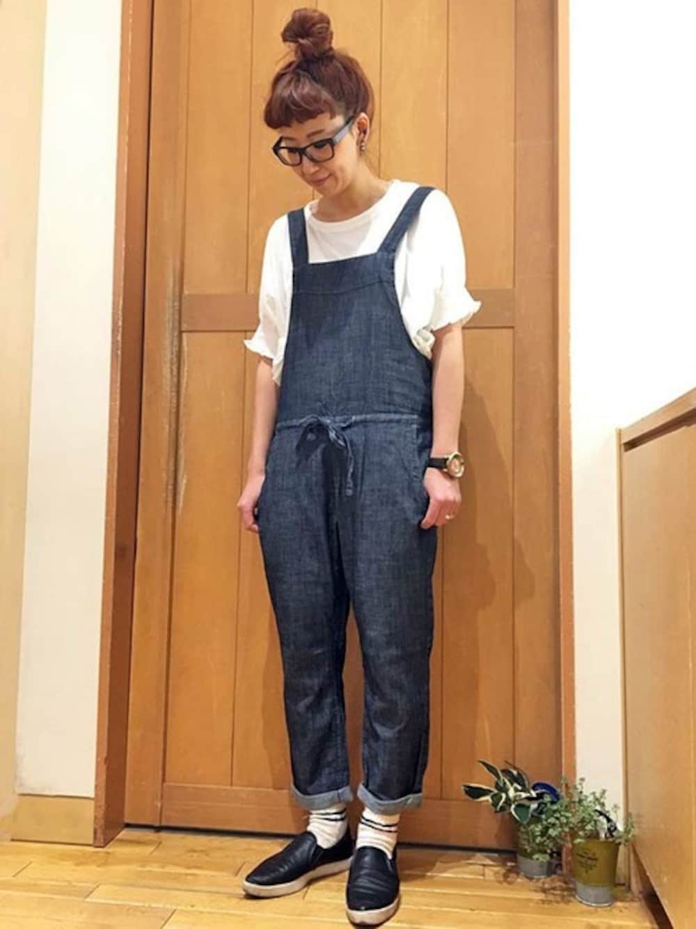 元気いっぱいボーイッシュコーデです。 軽くてやわらかなライトオンスのデニムを使ったオールインワンは、腰回りはほどよくゆったりしていますが、裾に向かってはテーパードをかけてすっきりとデザイン。 おだんごヘア&袖口フリルのトップスで女の子らしさをプラスしました♪