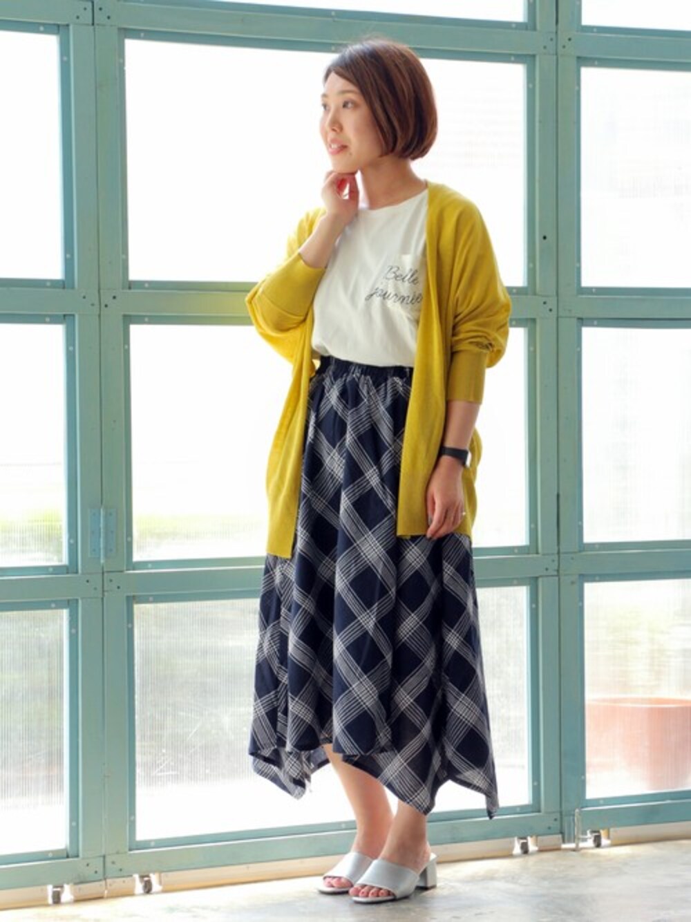 inoueのカーディガン/ボレロ「アクリルテンセルリネントッパー」を使ったコーディネート