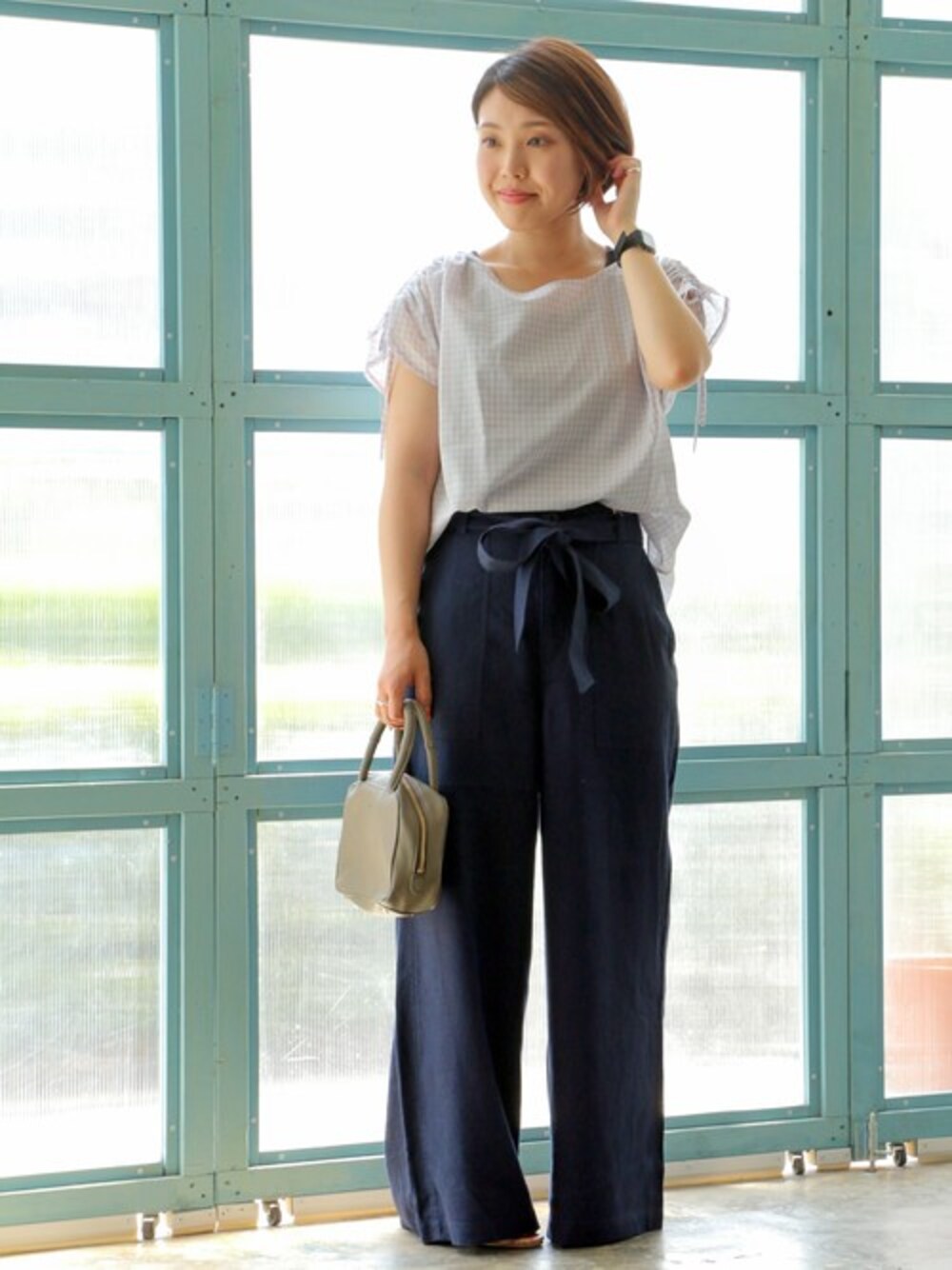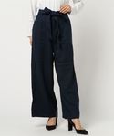 ゆったりシルエットのワイドパンツで、ワークテイストのポケットステッチでカジュアルに着こなせます。 今年トレンドのウエストリボンは腰高見え効果もあり。 麻レーヨンで履き心地も抜群です。 シンプルなトップスと合わせても、こなれ感の出るワイドパンツです。