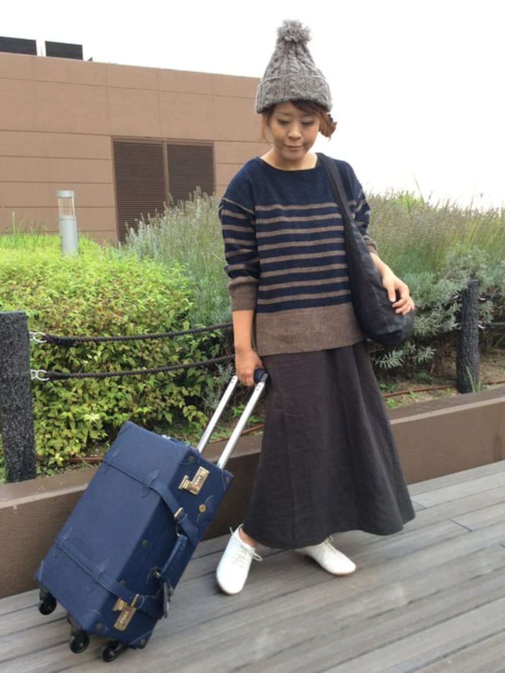 shomoのニット/セーター「Wシェットランド無地&ボーダープルオーバー」を使ったコーディネート