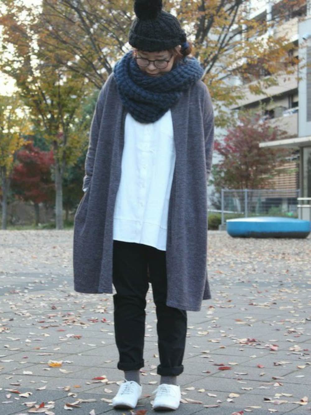 ロング丈レイヤードのゆるさ際立つスタイリング♪ シャツチュニックとシューズの清潔感と、 対比カラーの細身パンツのロールアップでキリッと感のあるゆるスタイルに仕上げました!