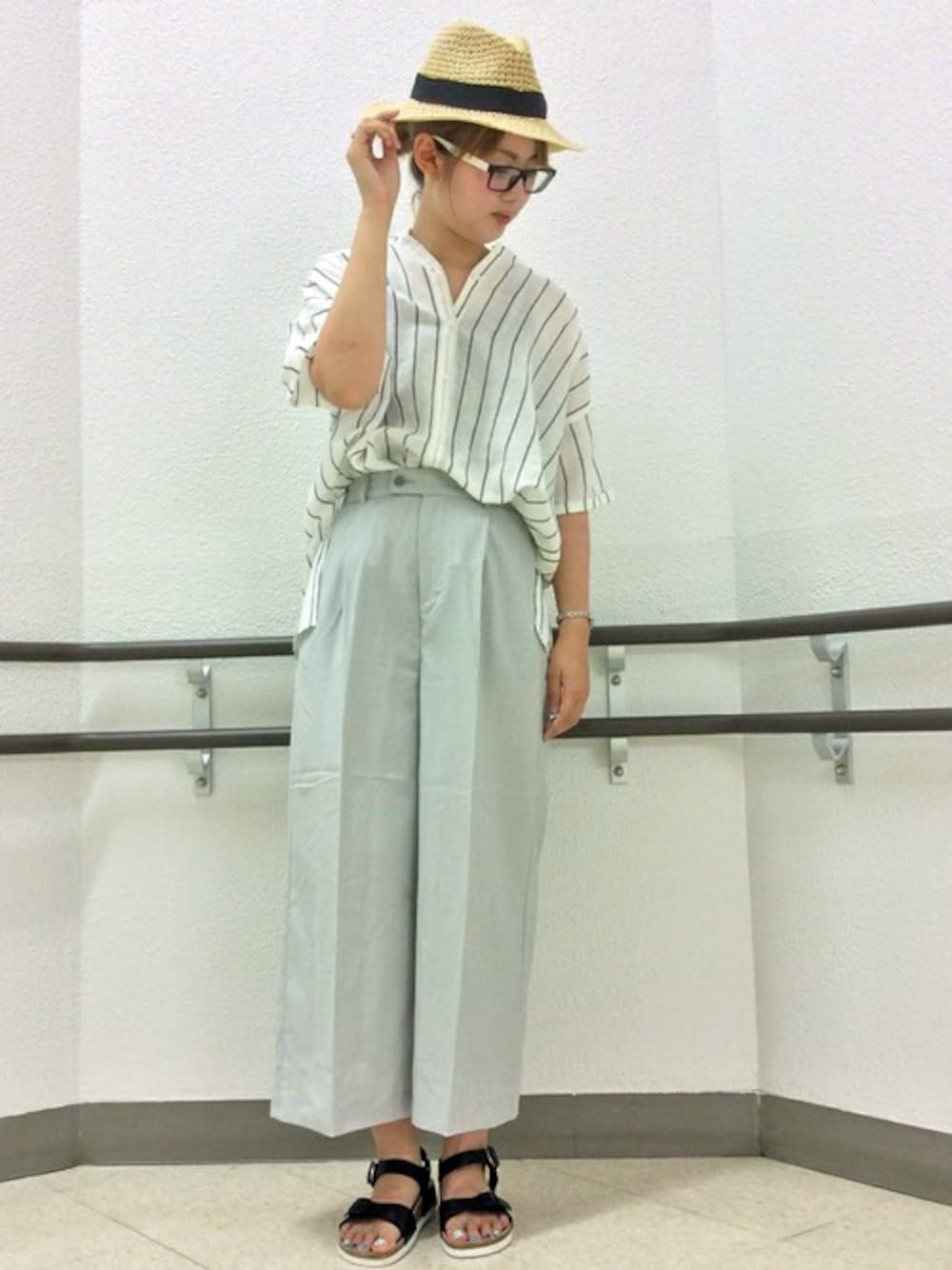 きれいめパンツコーデ。 すっきりとした首元に、身体のラインを拾わないビッグシルエットのシャツに、ドライタッチなワイドパンツを合わせました。 センタープリーツで程よいきっちり感のパンツは、Tシャツあわせでカジュアルに着こなすのも今年らしくておすすめです♪