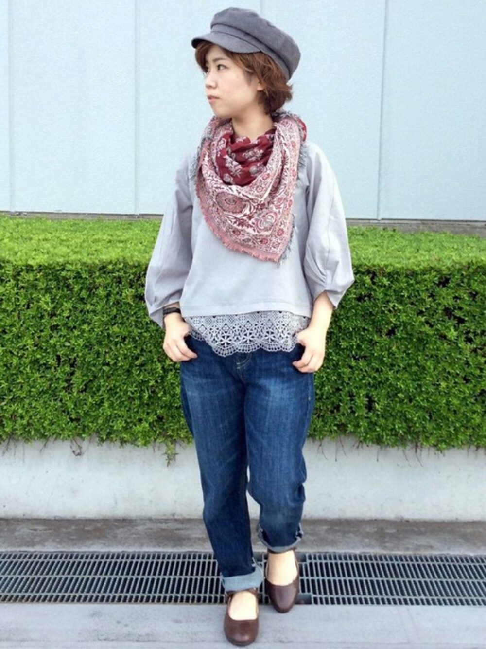 シンプルデニム+インパクトのあるストールの技ありコーデ。 素肌に心地よく馴染むレーヨン素材はオールシーズン使えて、季節の変わり目には特に便利。 シンプルなコーディネートや物足りない日のスタイルに投入すれば、手軽に華やぎをプラスすることができます。
