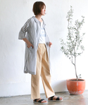 前後どちらを前にしてもOKで、さらに羽織りとしても使える3WAY設計のワンピース。 サラッとした素材感のコットンスラブで夏でも涼しく着ていただけます。 身幅に余裕のあるシルエット、フレアもきれいに出るボリューム感。 袖口はロールアップもできます。 着方次第で雰囲気を変えながらコーディネートして頂けます。