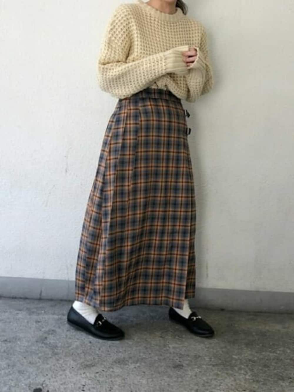 クラシカルな雰囲気の LBCのチェックスカート! ざっくりニットに合わせて カジュアルに^