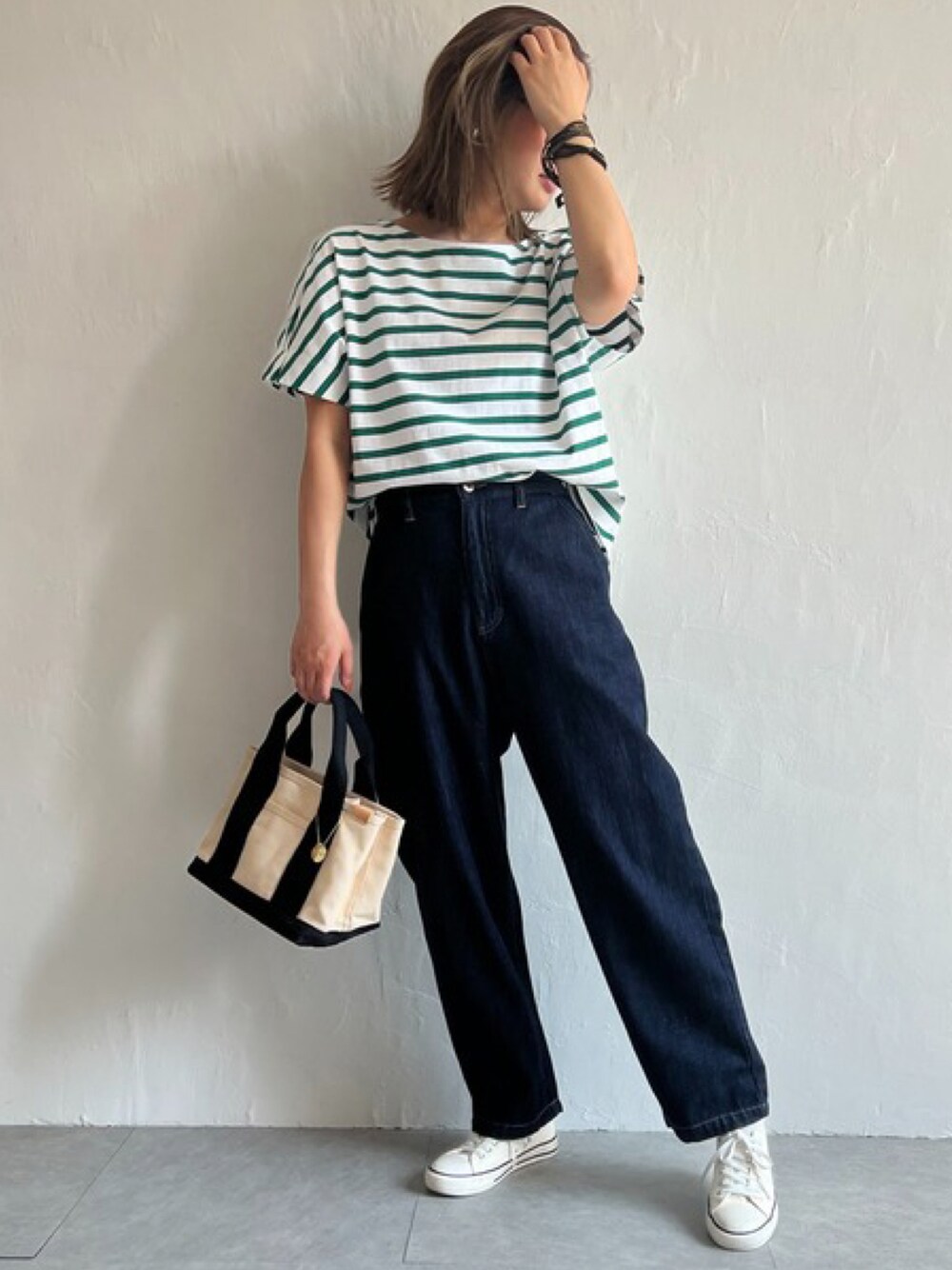 LBC STAFF(LBC HEAD OFFICE)のTシャツ/カットソー「ボーダー袖タックプルオーバー」を使ったコーディネート